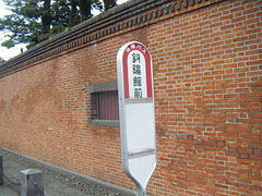 ○斜陽館前のバス停。