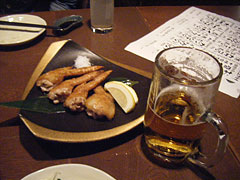 ○さて、打ち上げ。ビールと手羽先!旨い!