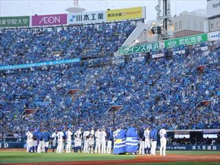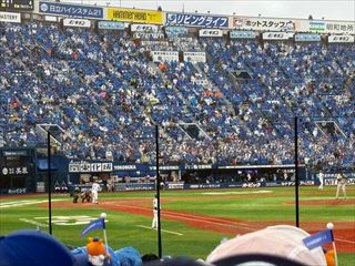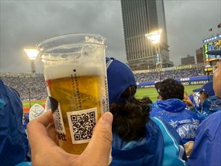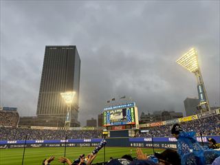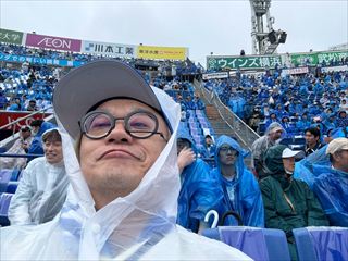 雨のハマスタでクライマックスシリーズ観戦だぞ。