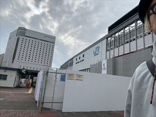 岡山到着。駅前工事してんのね。