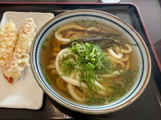 かけうどん。海老天。ちくわ天。うんま。