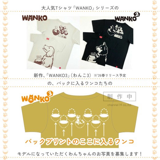 「楽しくないTシャツなんて、欲しくない。」をテーマに、遊びの詰まったデザインでアパレル・雑貨を展開する「OJICO〈オジコ〉」(有限会社チャンネルアッシュ、本社:石川県金沢市、代表取締役:越原裕幹)は、来春リリース予定のオリジナルTシャツ「WANKO3(わんこ3)」のデザインのモデルとなるわんちゃんのお写真を、10月2日(木)よりTシャツのOJICO公式Instagramにて10月31日(金)まで募集いたします。OJICOがデザインのモデルを公募するのは今回が初めてで、採用された方には完成したTシャツを1枚進呈いたします。