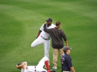 試合前。アップするオルティーズ。
