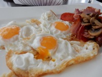 朝ごはん。目玉焼き×3。ちょっと多いね!